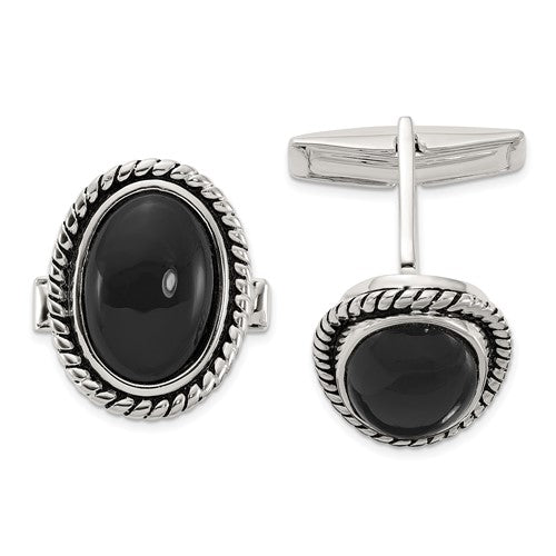 Specifications: Material: Primary - Purity:925|Finish:Polished|Stone Type_1:Onyx|Stone Color_1:Black|Stone Quantity_1:2|Length of Item:13.8 mm|Material: Accents:Enamel|Material: Accent Color 1:Black|Stone Setting_1:Bezel Set|Material: Primary:Sterling Silver|Stone Shape_1:Oval|Width of Item:9.9 mm|Accessory Type:Cuff Links|Engravable:Not Recommended|Product Type:Accessory|Sold By Unit:Pair|Gender:Men's|Texture:Textured|Material: Primary - Color:White|Stone Creation Method_1:Natural