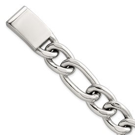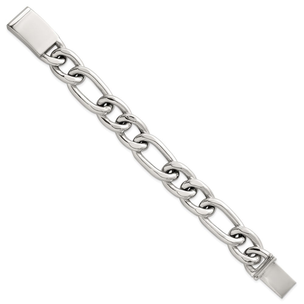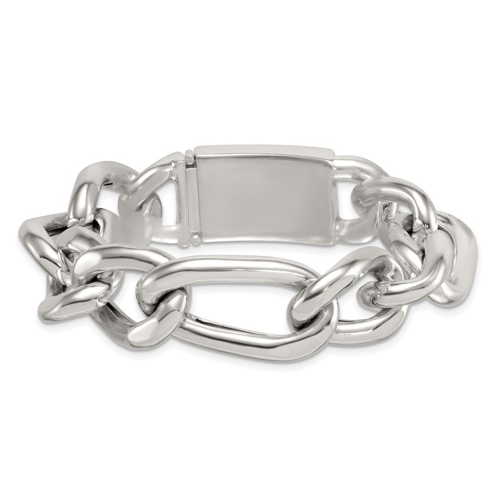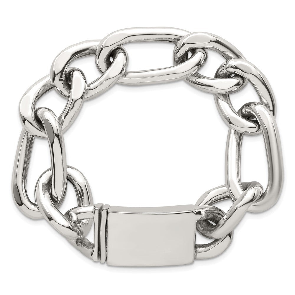 Sterling Silver Polished 17.0mm Figaro Curb 8 Inch Mens Bracelet