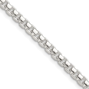 Specifications: Material: Primary - Purity:925|Finish:Polished|Length of Item:20 in|Chain Length:20 in|Chain Type:Box|Chain Width:4 mm|Clasp /Connector:Lobster (Fancy)|Clasp Thickness (Female end):3.5 mm|Clasp Thickness (Male end):3 mm|Clasp Width (Female end):3.75 mm|Clasp Width (Male end):7.1 mm|Coating:Anti-tarnish|Feature:Solid|Manufacturing Process:Machine Made|Material: Primary:Sterling Silver|Width of Item:4 mm|Product Type:Jewelry|Jewelry Type:Necklaces|Sold By Unit:Each|Necklace Type:Chain Styles|Gender:Unisex|Profile Type:Round|Material: Primary - Color:White