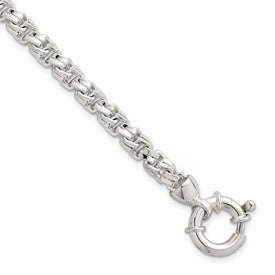 Specifications: Material: Primary - Purity:925|Finish:Polished|Length of Item:7.5 in|Chain Length:7.5 in|Chain Type:Other Chains|Chain Width:5.6 mm|Clasp /Connector:Spring Ring (Fancy)|Clasp Thickness (Female end):6.7 mm|Clasp Thickness (Male end):3.3 mm|Clasp Width (Female end):6.7 mm|Clasp Width (Male end):18 mm|Feature:Solid|Material: Primary:Sterling Silver|Width of Item:5.6 mm|Product Type:Jewelry|Jewelry Type:Chains|Sold By Unit:Each|Bracelet Type:Fancy|Gender:Men's|Texture:Diamond-cut|Material: Primary - Color:White