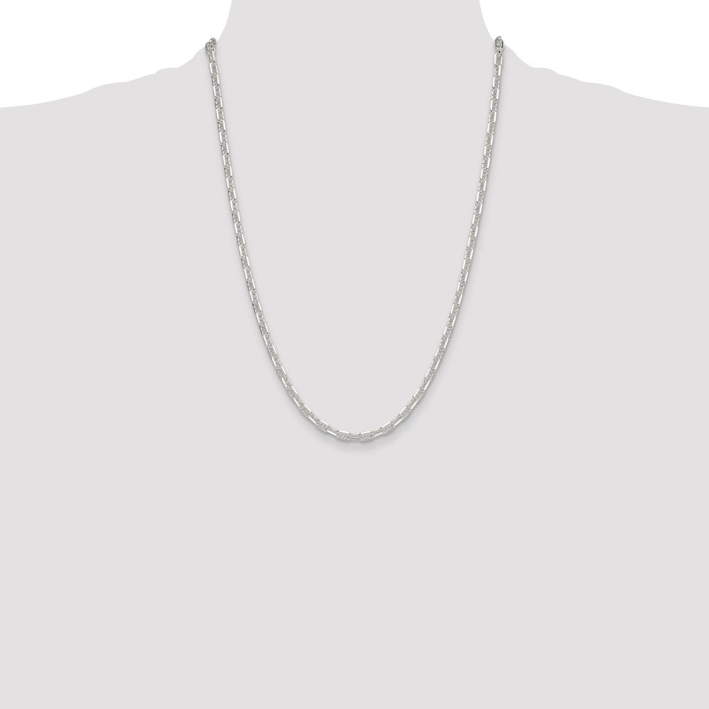 Specifications: Material: Primary - Purity:925|Finish:Polished|Length of Item:24 in|Chain Length:24 in|Chain Thickness:1.2 mm|Chain Type:Open Link|Chain Width:4.75 mm|Clasp /Connector:Lobster|Clasp Thickness (Female end):2.5 mm|Clasp Thickness (Male end):2.7 mm|Clasp Width (Female end):4 mm|Clasp Width (Male end):5.5 mm|Coating:Anti-tarnish|Material: Primary:Sterling Silver|Width of Item:4.75 mm|Product Type:Jewelry|Jewelry Type:Necklaces|Sold By Unit:Each|Necklace Type:Chain Styles|Gender:Unisex|Texture:Diamond-cut|Material: Primary - Color:White