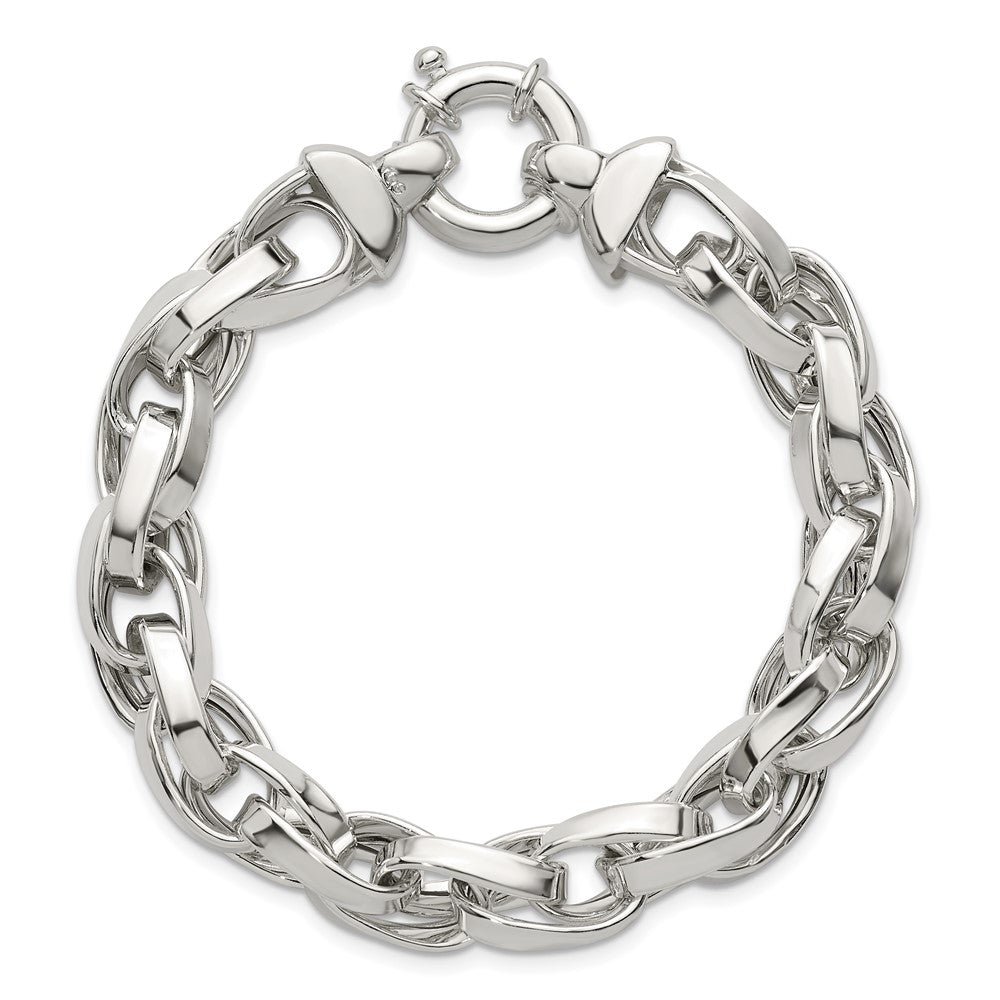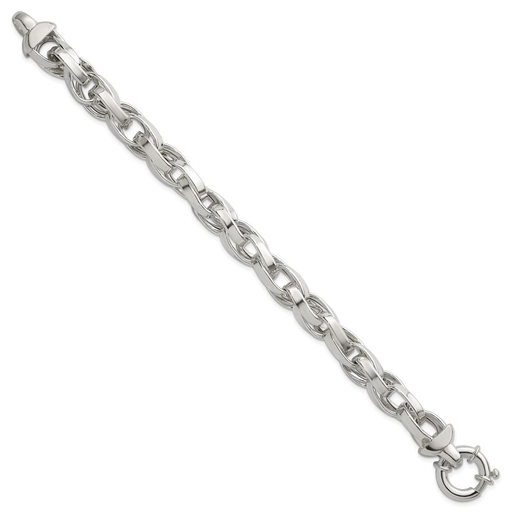 Specifications: Material: Primary - Purity:925|Finish:Polished|Length of Item:7.75 in|Chain Length:7.75 in|Chain Type:Link, Other|Chain Width:10 mm|Clasp /Connector:Spring Ring (Fancy)|Clasp Width (Female end):12.9 mm|Clasp Width (Male end):17.2 mm|Material: Primary:Sterling Silver|Width of Item:10 mm|Product Type:Jewelry|Jewelry Type:Bracelets|Sold By Unit:Each|Bracelet Type:Links|Gender:Unisex|Material: Primary - Color:White