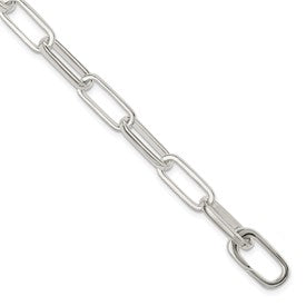 Specifications: Material: Primary - Purity:925|Finish:Polished|Length of Item:7.75 in|Chain Length:7.75 in|Chain Type:Open Link|Chain Width:6.62 mm|Clasp /Connector:Hidden Catch|Material: Primary:Sterling Silver|Width of Item:6.5 mm|Product Type:Jewelry|Jewelry Type:Bracelets|Sold By Unit:Each|Bracelet Type:Fancy|Gender:Women's|Material: Primary - Color:White