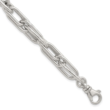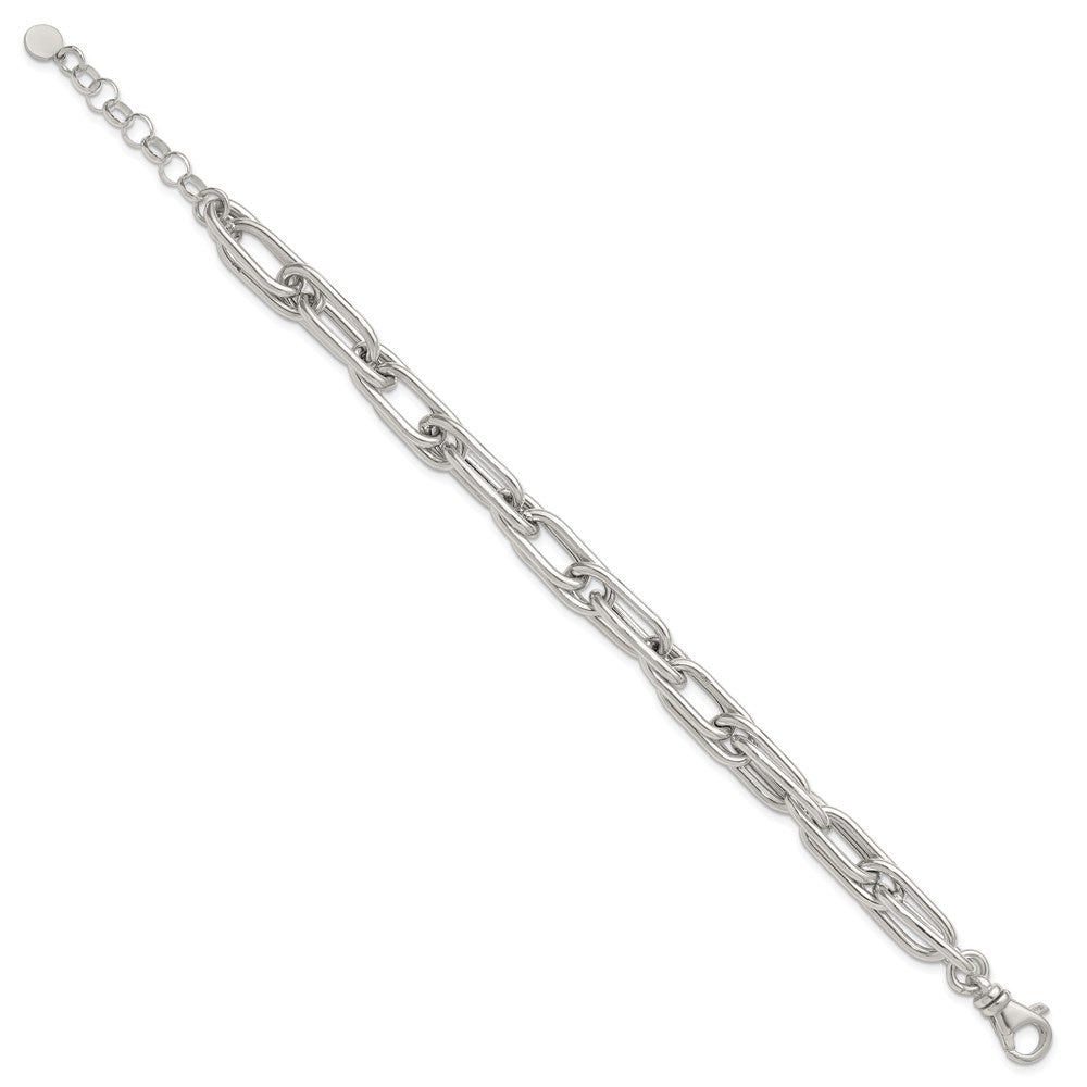 Sterling Silver Polished Oval Double Link 7.5 inch with 1 inch Extender Bracelet