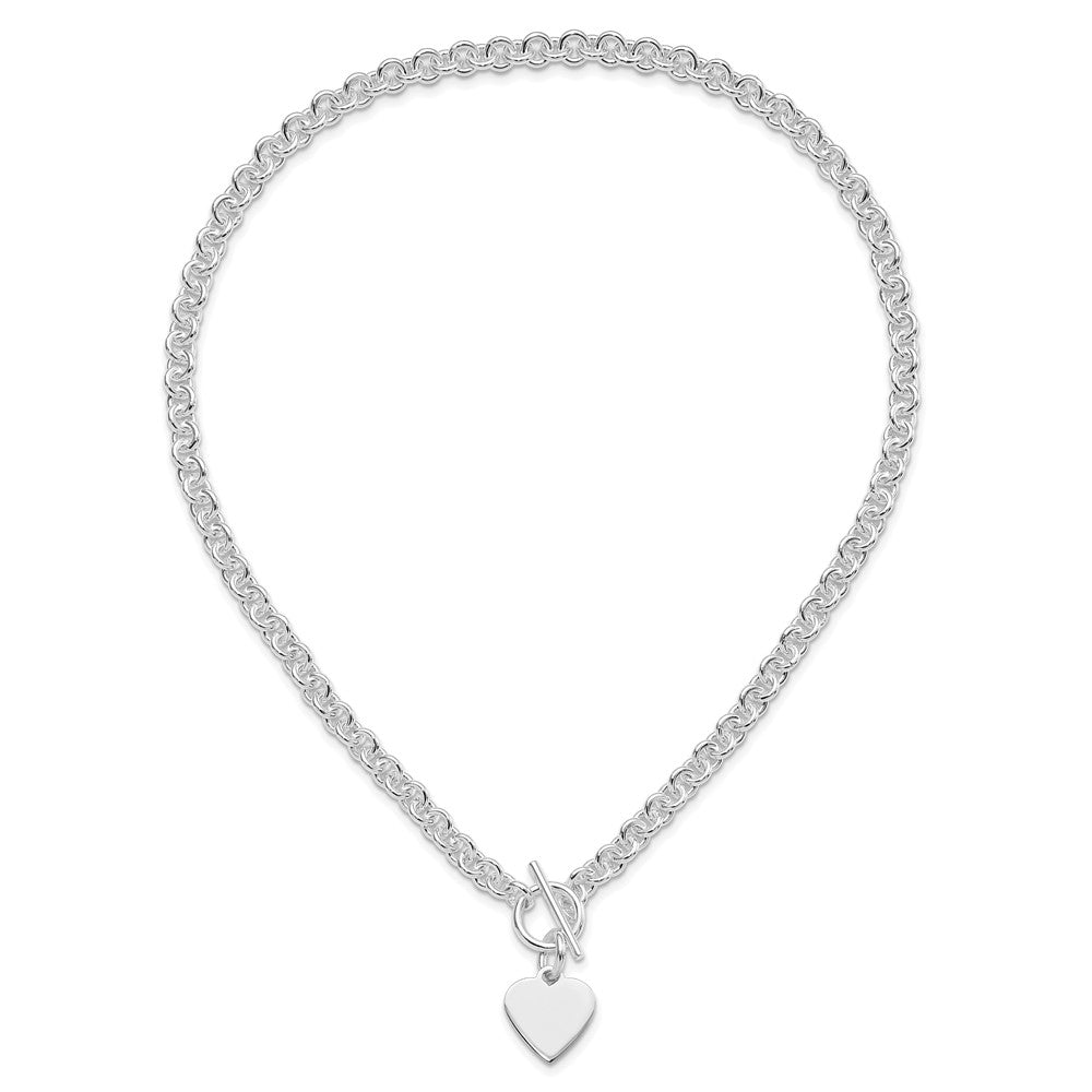 Sterling Silver RH-plated Heart Disc on Toggle 18in Necklace