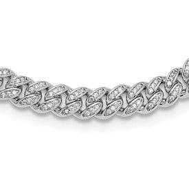 Sterling Silver Rh-plated Micro Pave CZ 6mm Curb Link 18in Necklace