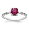 Sterling Silver Rh-plated-plated 1.43R Ruby and .12WT White Topaz Ring