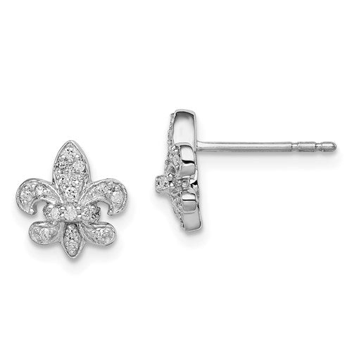 Sterling Silver Rhodium 0.16ct Diam. Fleur de Lis Post Earrings
