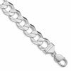 Specifications: Material: Primary - Purity:925|Finish:Polished|Length of Item:8 in|Plating:Rhodium|Chain Length:8 in|Chain Type:Curb|Chain Width:14 mm|Clasp /Connector:Lobster|Clasp Thickness (Female end):5.8 mm|Clasp Thickness (Male end):4.1 mm|Clasp Width (Female end):14 mm|Clasp Width (Male end):9 mm|Material: Primary:Sterling Silver|Width of Item:14 mm|Product Type:Jewelry|Jewelry Type:Bracelets|Sold By Unit:Each|Bracelet Type:Chain Styles|Gender:Unisex|Profile Type:Concave|Material: Primary - Color:White|Edge Type:Beveled|Plating Color:Silver Tone