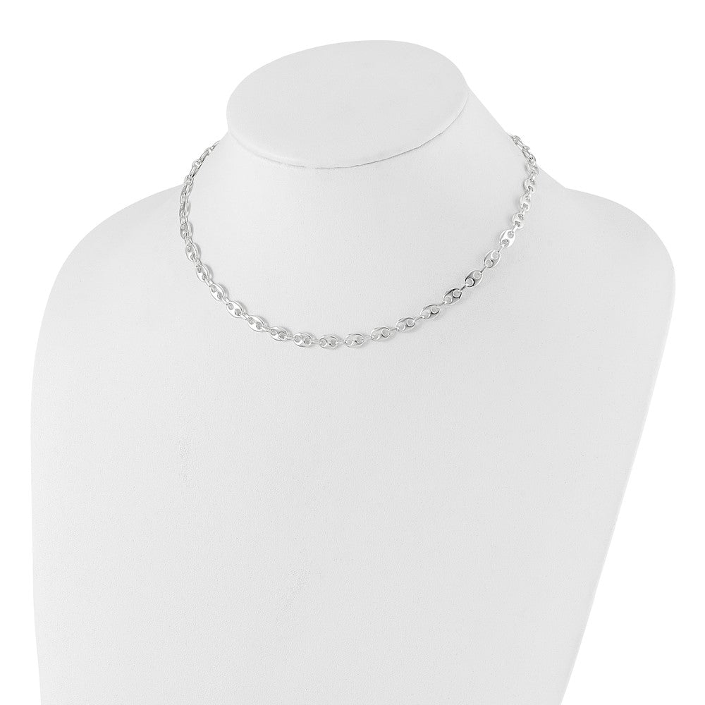 Sterling Silver Rhodium-plated 16in with 2in ext. Fancy Link Necklace