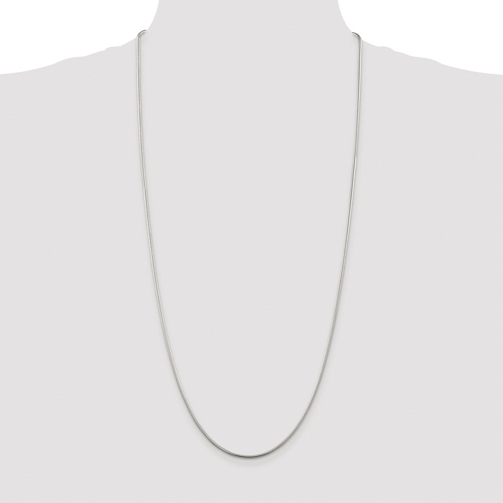 Specifications: Material: Primary - Purity:925|Finish:Polished|Length of Item:30 in|Plating:Rhodium|Chain Length:30 in|Chain Type:Snake|Chain Width:1.75 mm|Clasp /Connector:Lobster|Material: Primary:Sterling Silver|Width of Item:1.75 mm|Product Type:Jewelry|Jewelry Type:Necklaces|Sold By Unit:Each|Necklace Type:Chain Styles|Gender:Unisex|Profile Type:Round|Material: Primary - Color:White|Plating Color:Silver Tone
