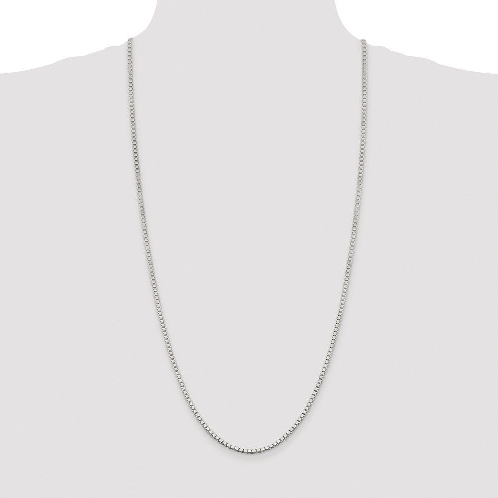 Specifications: Material: Primary - Purity:925|Finish:Polished|Length of Item:30 in|Plating:Rhodium|Chain Length:30 in|Chain Type:Box|Chain Width:2.5 mm|Clasp /Connector:Lobster|Material: Primary:Sterling Silver|Width of Item:2.5 mm|Product Type:Jewelry|Jewelry Type:Necklaces|Sold By Unit:Each|Necklace Type:Chain Styles|Gender:Unisex|Material: Primary - Color:White|Plating Color:Silver Tone
