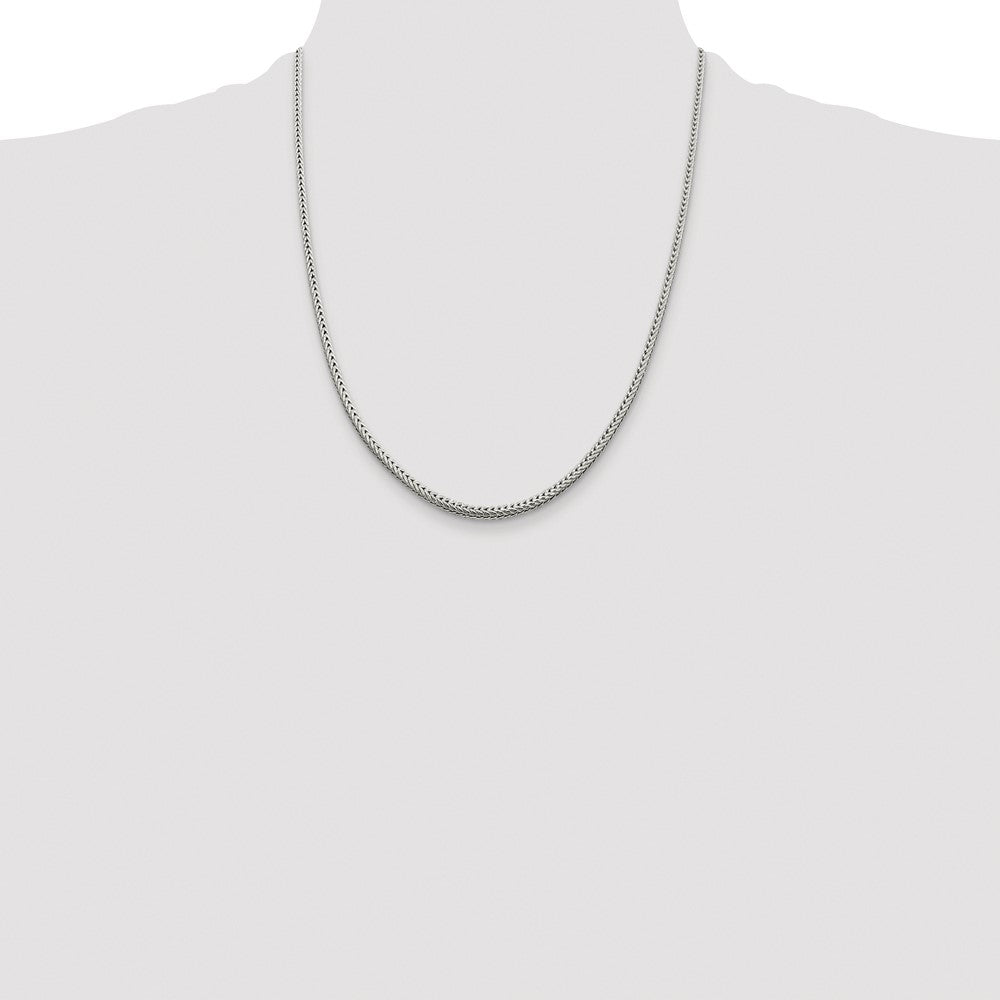 Specifications: Material: Primary - Purity:925|Finish:Polished|Length of Item:22 in|Plating:Rhodium|Chain Length:22 in|Chain Type:Franco|Chain Width:2.5 mm|Clasp /Connector:Lobster|Material: Primary:Sterling Silver|Width of Item:2.5 mm|Product Type:Jewelry|Jewelry Type:Necklaces|Sold By Unit:Each|Necklace Type:Chain Styles|Gender:Unisex|Texture:Diamond-cut|Profile Type:Round|Material: Primary - Color:White|Plating Color:Silver Tone