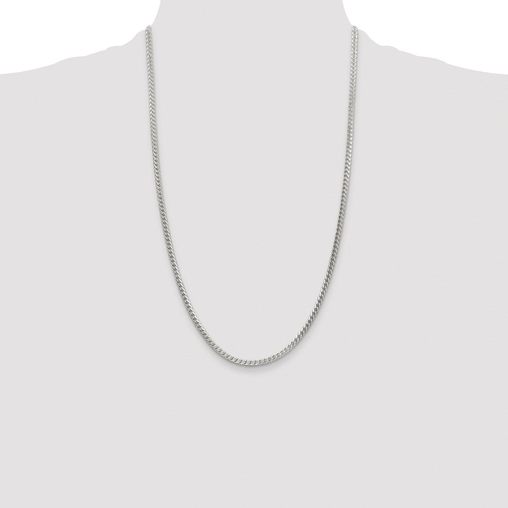 Specifications: Material: Primary - Purity:925|Finish:Polished|Length of Item:26 in|Plating:Rhodium|Chain Length:26 in|Chain Thickness:3.1 mm|Chain Type:Franco|Chain Width:3.1 mm|Clasp /Connector:Lobster|Clasp Thickness (Female end):1.9 mm|Clasp Thickness (Male end):3.2 mm|Clasp Width (Female end):3.9 mm|Clasp Width (Male end):5.3 mm|Material: Primary:Sterling Silver|Width of Item:3.1 mm|Product Type:Jewelry|Jewelry Type:Necklaces|Sold By Unit:Each|Necklace Type:Chain Styles|Gender:Unisex|Texture:Diamond-cut|Profile Type:Square|Material: Primary - Color:White|Plating Color:Silver Tone