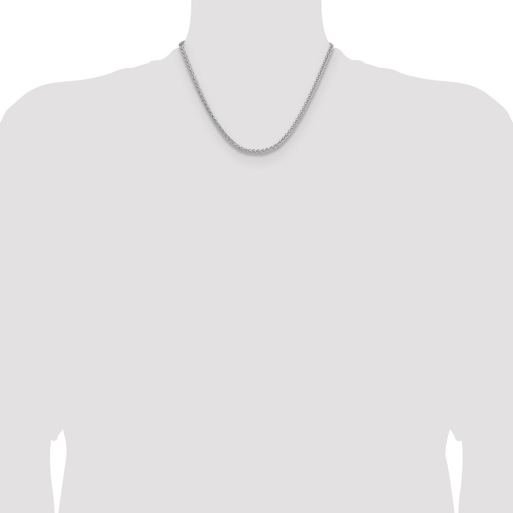 Specifications: Material: Primary - Purity:925|Finish:Polished|Length of Item:18 in|Plating:Rhodium|Chain Length:18 in|Chain Thickness:3.4 mm|Chain Type:Spiga (Wheat)|Chain Width:3.5 mm|Clasp /Connector:Lobster|Clasp Thickness (Female end):4 mm|Clasp Thickness (Male end):2.7 mm|Clasp Width (Female end):3.7 mm|Clasp Width (Male end):5.5 mm|Material: Primary:Sterling Silver|Width of Item:3.5 mm|Product Type:Jewelry|Jewelry Type:Necklaces|Sold By Unit:Each|Necklace Type:Chain Styles|Gender:Unisex|Texture:Diamond-cut|Profile Type:Square|Material: Primary - Color:White|Plating Color:Silver Tone