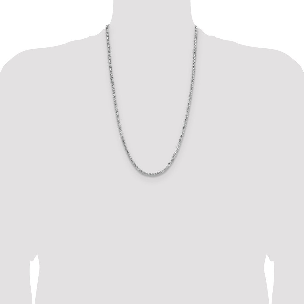 Specifications: Material: Primary - Purity:925|Finish:Polished|Length of Item:26 in|Plating:Rhodium|Chain Length:26 in|Chain Thickness:3.4 mm|Chain Type:Spiga (Wheat)|Chain Width:3.5 mm|Clasp /Connector:Lobster|Clasp Thickness (Female end):4 mm|Clasp Thickness (Male end):2.7 mm|Clasp Width (Female end):3.7 mm|Clasp Width (Male end):5.5 mm|Material: Primary:Sterling Silver|Width of Item:3.5 mm|Product Type:Jewelry|Jewelry Type:Necklaces|Sold By Unit:Each|Necklace Type:Chain Styles|Gender:Unisex|Texture:Diamond-cut|Profile Type:Square|Material: Primary - Color:White|Plating Color:Silver Tone