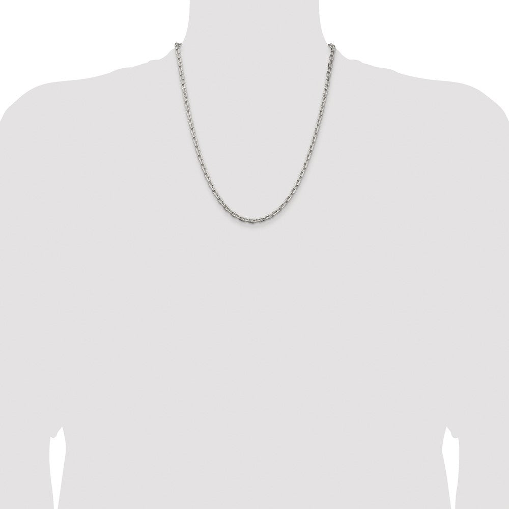 Specifications: Material: Primary - Purity:925|Finish:Polished|Length of Item:22 in|Plating:Rhodium|Chain Length:22 in|Chain Type:Cable|Chain Width:3.95 mm|Clasp /Connector:Lobster|Material: Primary:Sterling Silver|Width of Item:3.95 mm|Product Type:Jewelry|Jewelry Type:Necklaces|Sold By Unit:Each|Necklace Type:Chain Styles|Gender:Unisex|Material: Primary - Color:White|Edge Type:Beveled|Plating Color:Silver Tone