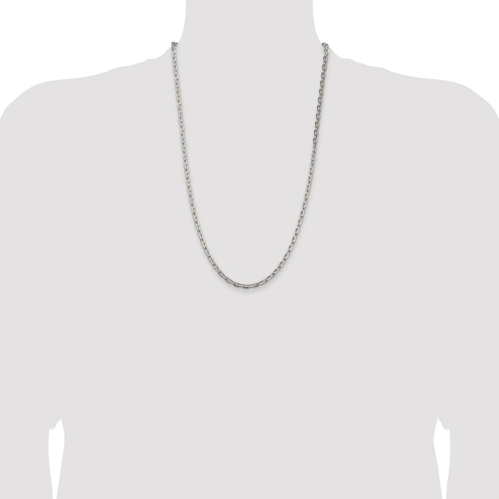 Specifications: Material: Primary - Purity:925|Finish:Polished|Length of Item:26 in|Plating:Rhodium|Chain Length:26 in|Chain Type:Cable|Chain Width:3.95 mm|Clasp /Connector:Lobster|Material: Primary:Sterling Silver|Width of Item:3.95 mm|Product Type:Jewelry|Jewelry Type:Necklaces|Sold By Unit:Each|Necklace Type:Chain Styles|Gender:Unisex|Material: Primary - Color:White|Edge Type:Beveled|Plating Color:Silver Tone