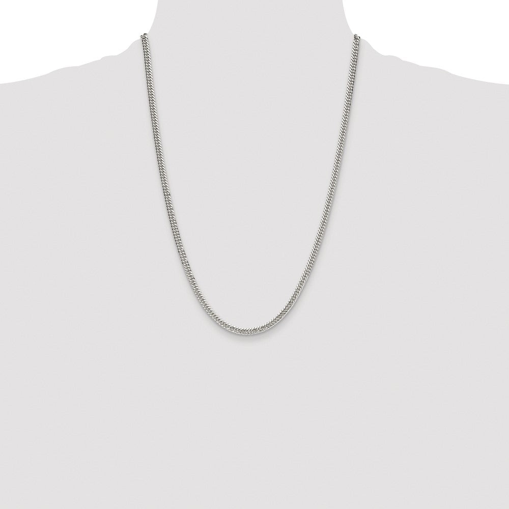 Sterling Silver Rhodium-plated 3.9mm Double Diamond-cut Curb Chain