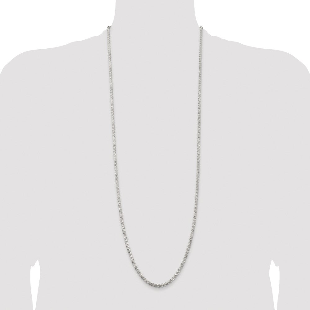 Specifications: Material: Primary - Purity:925|Finish:Polished|Length of Item:36 in|Plating:Rhodium|Chain Length:36 in|Chain Type:Spiga (Wheat)|Chain Width:3 mm|Clasp /Connector:Lobster|Material: Primary:Sterling Silver|Width of Item:3 mm|Product Type:Jewelry|Jewelry Type:Necklaces|Sold By Unit:Each|Necklace Type:Chain Styles|Gender:Unisex|Profile Type:Round|Material: Primary - Color:White|Plating Color:Silver Tone