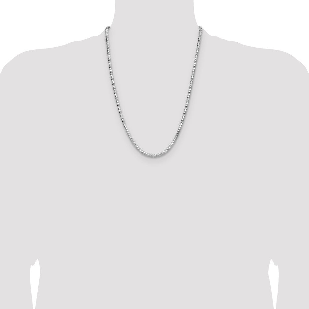 Specifications: Material: Primary - Purity:925|Finish:Polished|Length of Item:24 in|Plating:Rhodium|Chain Length:24 in|Chain Type:Franco|Chain Width:4 mm|Clasp /Connector:Lobster|Material: Primary:Sterling Silver|Width of Item:4 mm|Product Type:Jewelry|Jewelry Type:Necklaces|Sold By Unit:Each|Necklace Type:Chain Styles|Gender:Unisex|Texture:Diamond-cut|Profile Type:Square|Material: Primary - Color:White|Plating Color:Silver Tone