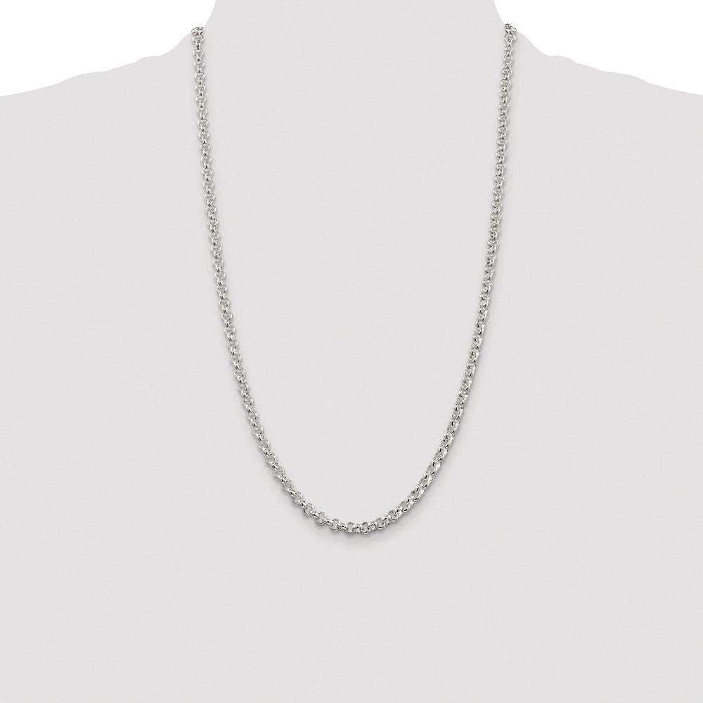 Specifications: Material: Primary - Purity:925|Finish:Polished|Length of Item:26 in|Plating:Rhodium|Chain Length:26 in|Chain Type:Rolo|Chain Width:4.6 mm|Clasp /Connector:Lobster|Material: Primary:Sterling Silver|Width of Item:4.6 mm|Product Type:Jewelry|Jewelry Type:Necklaces|Sold By Unit:Each|Necklace Type:Chain Styles|Gender:Unisex|Material: Primary - Color:White|Plating Color:Silver Tone