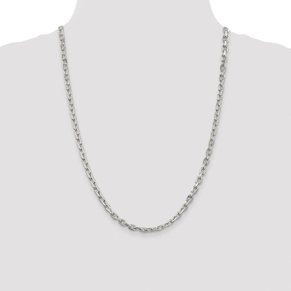 Specifications: Material: Primary - Purity:925|Finish:Polished|Length of Item:24 in|Plating:Rhodium|Chain Length:24 in|Chain Type:Cable|Chain Width:4.9 mm|Clasp /Connector:Lobster|Material: Primary:Sterling Silver|Width of Item:4.9 mm|Product Type:Jewelry|Jewelry Type:Necklaces|Sold By Unit:Each|Necklace Type:Chain Styles|Gender:Unisex|Material: Primary - Color:White|Edge Type:Beveled|Plating Color:Silver Tone