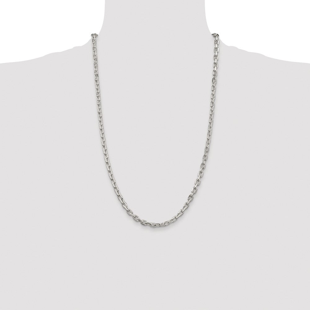 Specifications: Material: Primary - Purity:925|Finish:Polished|Length of Item:26 in|Plating:Rhodium|Chain Length:26 in|Chain Type:Cable|Chain Width:4.9 mm|Clasp /Connector:Lobster|Material: Primary:Sterling Silver|Width of Item:4.9 mm|Product Type:Jewelry|Jewelry Type:Necklaces|Sold By Unit:Each|Necklace Type:Chain Styles|Gender:Unisex|Material: Primary - Color:White|Edge Type:Beveled|Plating Color:Silver Tone