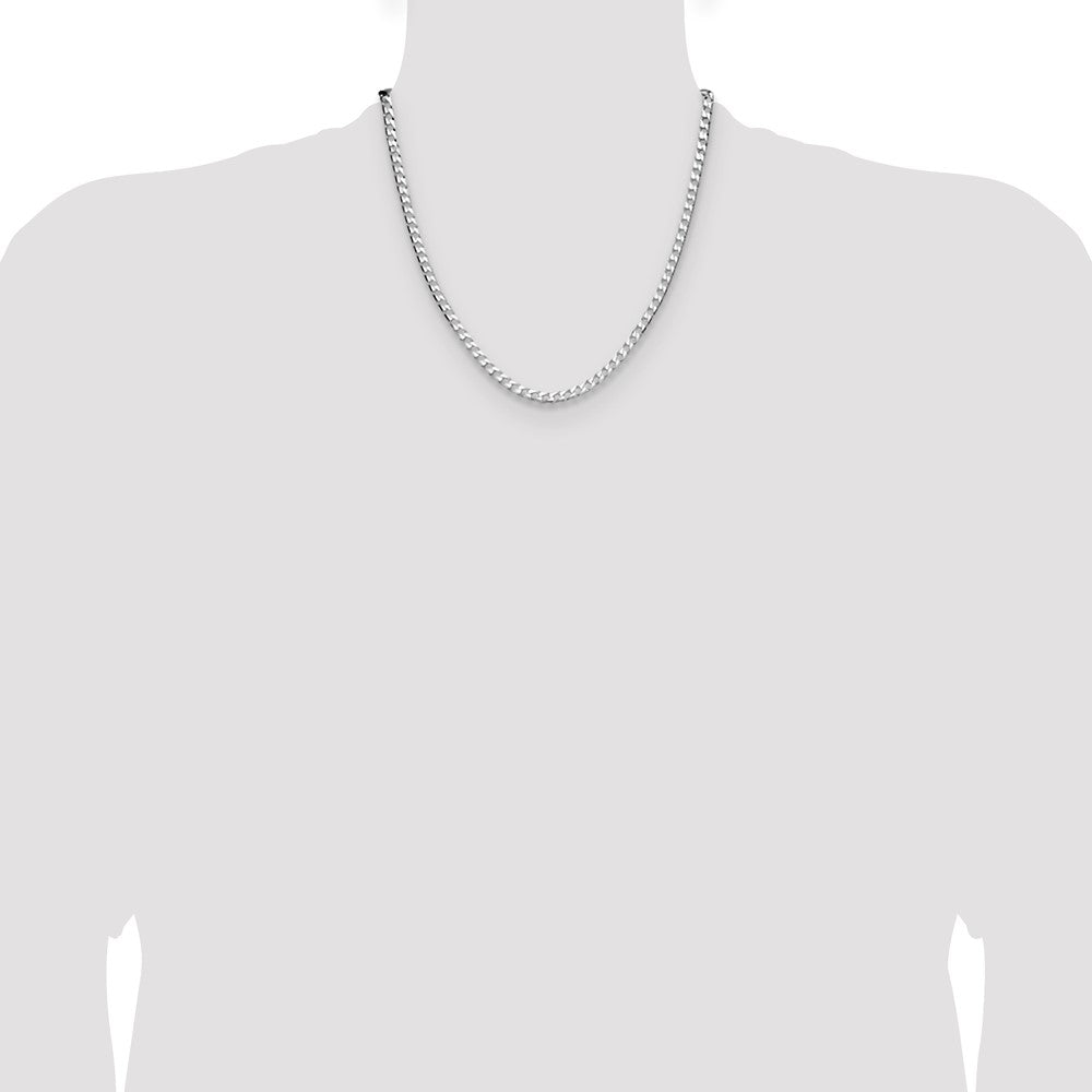 Specifications: Material: Primary - Purity:925|Finish:Polished|Length of Item:20 in|Plating:Rhodium|Chain Length:20 in|Chain Type:Curb|Chain Width:4 mm|Clasp /Connector:Lobster|Material: Primary:Sterling Silver|Width of Item:4 mm|Product Type:Jewelry|Jewelry Type:Necklaces|Sold By Unit:Each|Necklace Type:Chain Styles|Gender:Unisex|Texture:Diamond-cut|Profile Type:Flat|Material: Primary - Color:White|Plating Color:Silver Tone