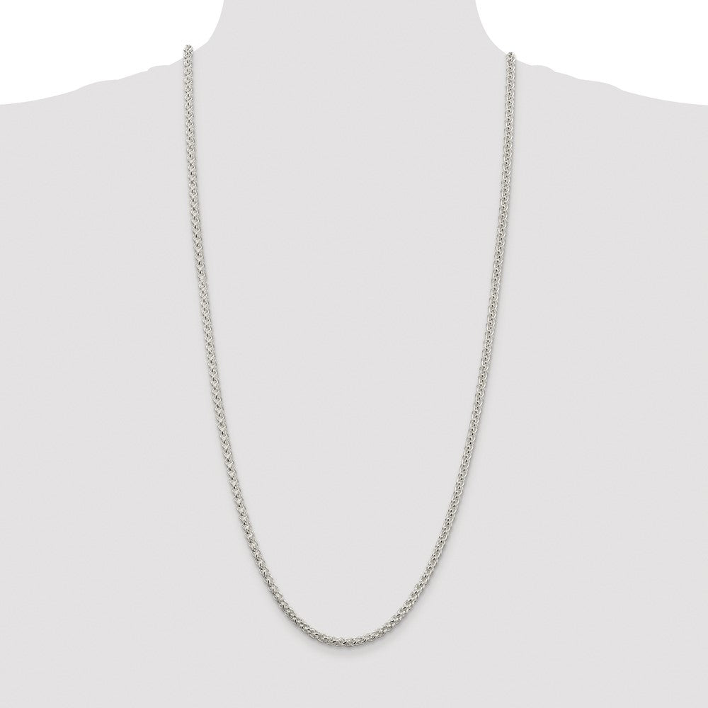 Specifications: Material: Primary - Purity:925|Finish:Polished|Length of Item:30 in|Plating:Rhodium|Chain Length:30 in|Chain Type:Spiga (Wheat)|Chain Width:4 mm|Clasp /Connector:Lobster|Material: Primary:Sterling Silver|Width of Item:4 mm|Product Type:Jewelry|Jewelry Type:Necklaces|Sold By Unit:Each|Necklace Type:Chain Styles|Gender:Unisex|Profile Type:Round|Material: Primary - Color:White|Plating Color:Silver Tone