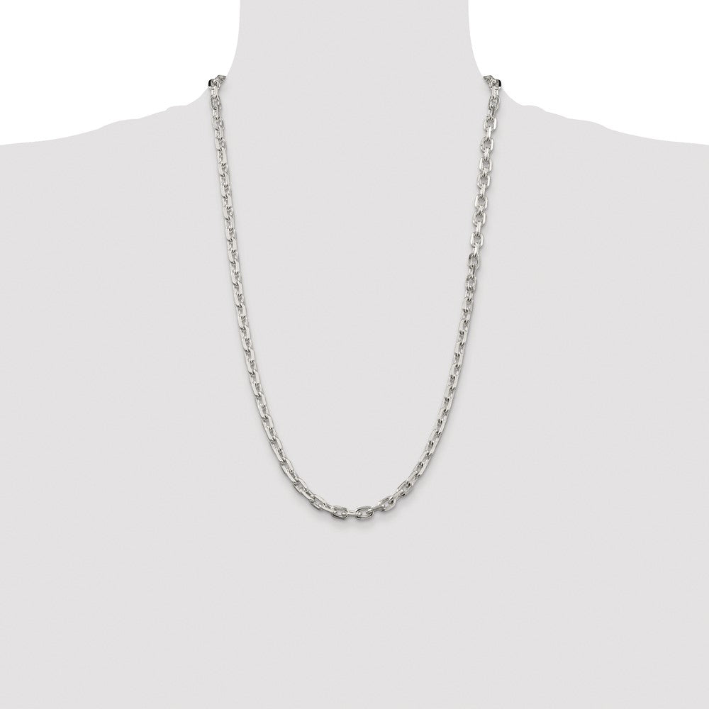 Specifications: Material: Primary - Purity:925|Finish:Polished|Length of Item:26 in|Plating:Rhodium|Chain Length:26 in|Chain Type:Cable|Chain Width:5.4 mm|Clasp /Connector:Lobster|Material: Primary:Sterling Silver|Width of Item:5.4 mm|Product Type:Jewelry|Jewelry Type:Necklaces|Sold By Unit:Each|Necklace Type:Chain Styles|Gender:Unisex|Material: Primary - Color:White|Edge Type:Beveled|Plating Color:Silver Tone