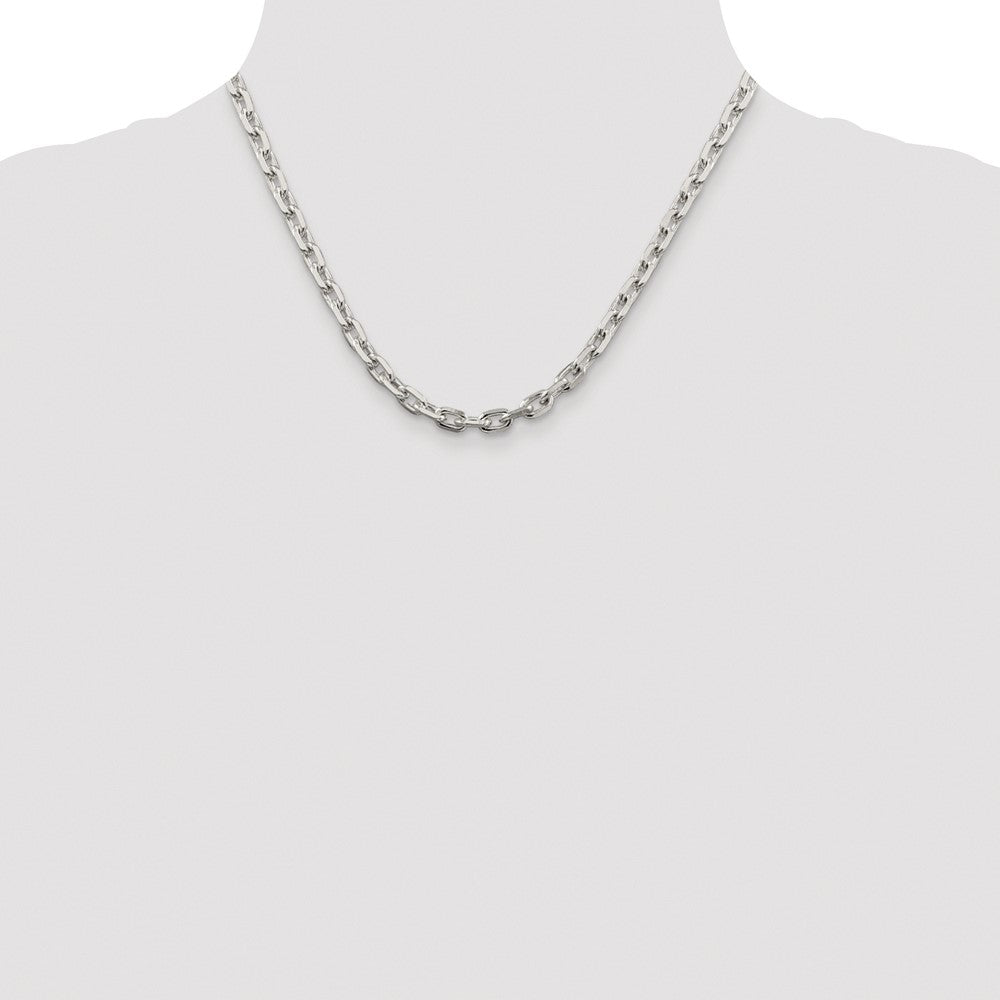 Specifications: Material: Primary - Purity:925|Finish:Polished|Length of Item:18 in|Plating:Rhodium|Chain Length:18 in|Chain Type:Cable|Chain Width:5.4 mm|Clasp /Connector:Lobster|Material: Primary:Sterling Silver|Width of Item:5.4 mm|Product Type:Jewelry|Jewelry Type:Necklaces|Sold By Unit:Each|Necklace Type:Chain Styles|Gender:Unisex|Material: Primary - Color:White|Edge Type:Beveled|Plating Color:Silver Tone