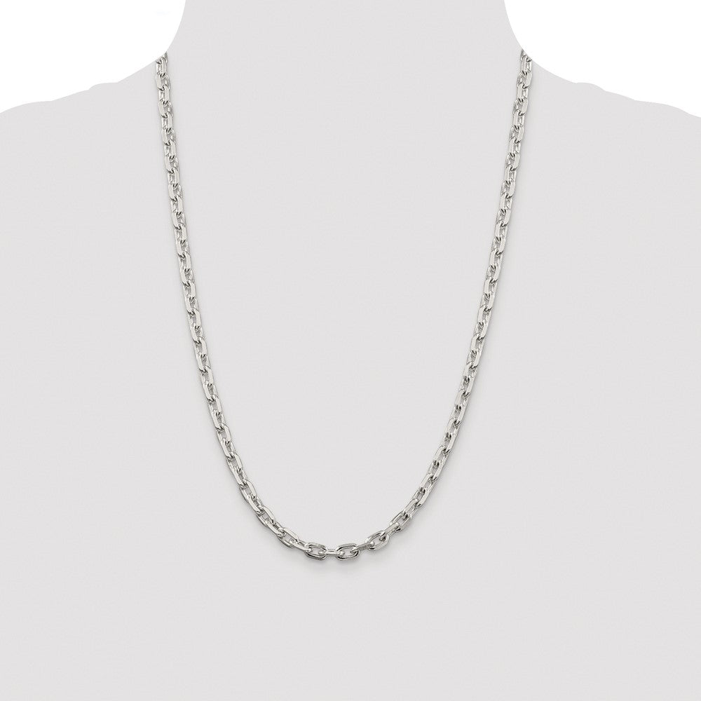 Specifications: Material: Primary - Purity:925|Finish:Polished|Length of Item:24 in|Plating:Rhodium|Chain Length:24 in|Chain Type:Cable|Chain Width:5.4 mm|Clasp /Connector:Lobster|Material: Primary:Sterling Silver|Width of Item:5.4 mm|Product Type:Jewelry|Jewelry Type:Necklaces|Sold By Unit:Each|Necklace Type:Chain Styles|Gender:Unisex|Material: Primary - Color:White|Edge Type:Beveled|Plating Color:Silver Tone