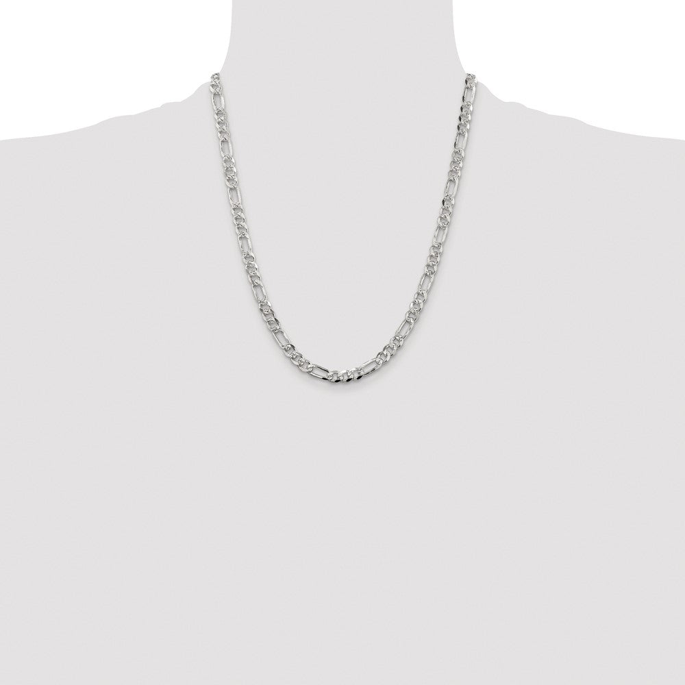 Specifications: Material: Primary - Purity:925|Finish:Polished|Length of Item:22 in|Plating:Rhodium|Chain Length:22 in|Chain Type:Figaro|Chain Width:5.5 mm|Clasp /Connector:Lobster|Material: Primary:Sterling Silver|Width of Item:5.5 mm|Product Type:Jewelry|Jewelry Type:Chains|Sold By Unit:Each|Necklace Type:Chain Styles|Gender:Unisex|Texture:Pave|Profile Type:Flat|Material: Primary - Color:White|Plating Color:Silver Tone