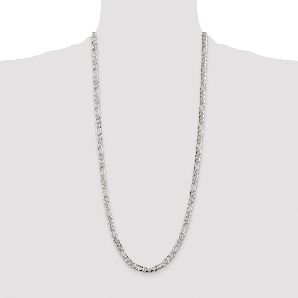 Specifications: Material: Primary - Purity:925|Finish:Polished|Length of Item:30 in|Plating:Rhodium|Chain Length:30 in|Chain Type:Figaro|Chain Width:5.5 mm|Clasp /Connector:Lobster|Material: Primary:Sterling Silver|Width of Item:5.5 mm|Product Type:Jewelry|Jewelry Type:Chains|Sold By Unit:Each|Necklace Type:Chain Styles|Gender:Unisex|Texture:Pave|Profile Type:Flat|Material: Primary - Color:White|Plating Color:Silver Tone