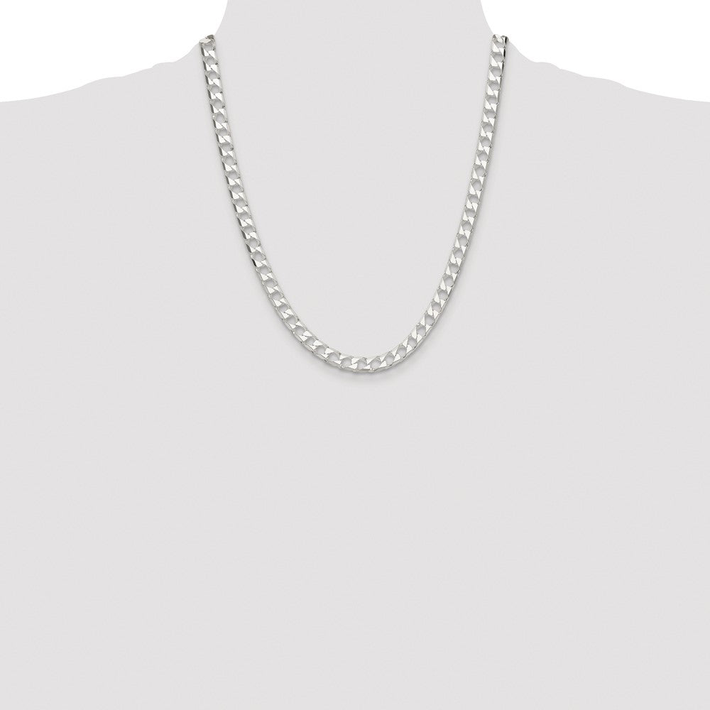 Specifications: Material: Primary - Purity:925|Finish:Polished|Length of Item:22 in|Plating:Rhodium|Chain Length:22 in|Chain Type:Curb|Chain Width:5.75 mm|Clasp /Connector:Lobster|Clasp Thickness (Female end):3 mm|Clasp Thickness (Male end):2.9 mm|Clasp Width (Female end):5.8 mm|Clasp Width (Male end):6.5 mm|Material: Primary:Sterling Silver|Width of Item:5.75 mm|Product Type:Jewelry|Jewelry Type:Necklaces|Sold By Unit:Each|Necklace Type:Chain Styles|Gender:Unisex|Texture:Diamond-cut|Profile Type:Flat|Material: Primary - Color:White|Plating Color:Silver Tone