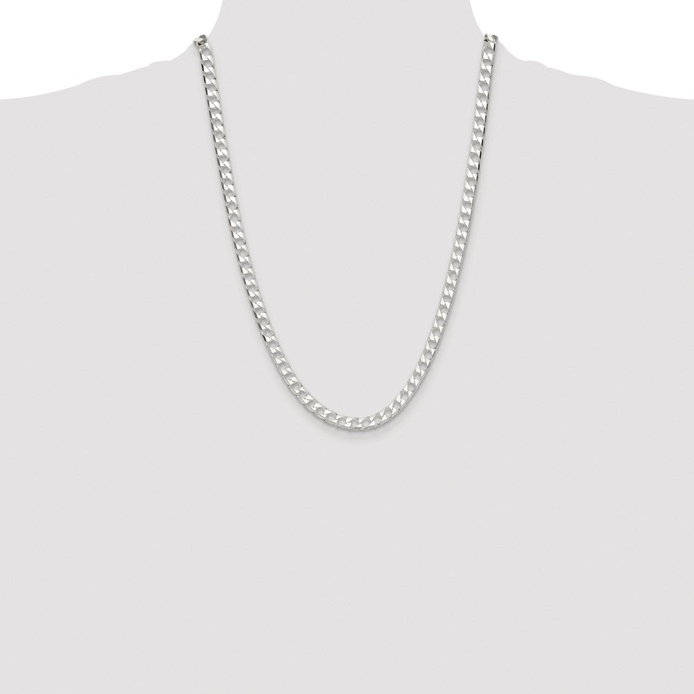 Specifications: Material: Primary - Purity:925|Finish:Polished|Length of Item:24 in|Plating:Rhodium|Chain Length:24 in|Chain Type:Curb|Chain Width:5.75 mm|Clasp /Connector:Lobster|Clasp Thickness (Female end):3 mm|Clasp Thickness (Male end):2.9 mm|Clasp Width (Female end):5.8 mm|Clasp Width (Male end):6.5 mm|Material: Primary:Sterling Silver|Width of Item:5.75 mm|Product Type:Jewelry|Jewelry Type:Necklaces|Sold By Unit:Each|Necklace Type:Chain Styles|Gender:Unisex|Texture:Diamond-cut|Profile Type:Flat|Material: Primary - Color:White|Plating Color:Silver Tone