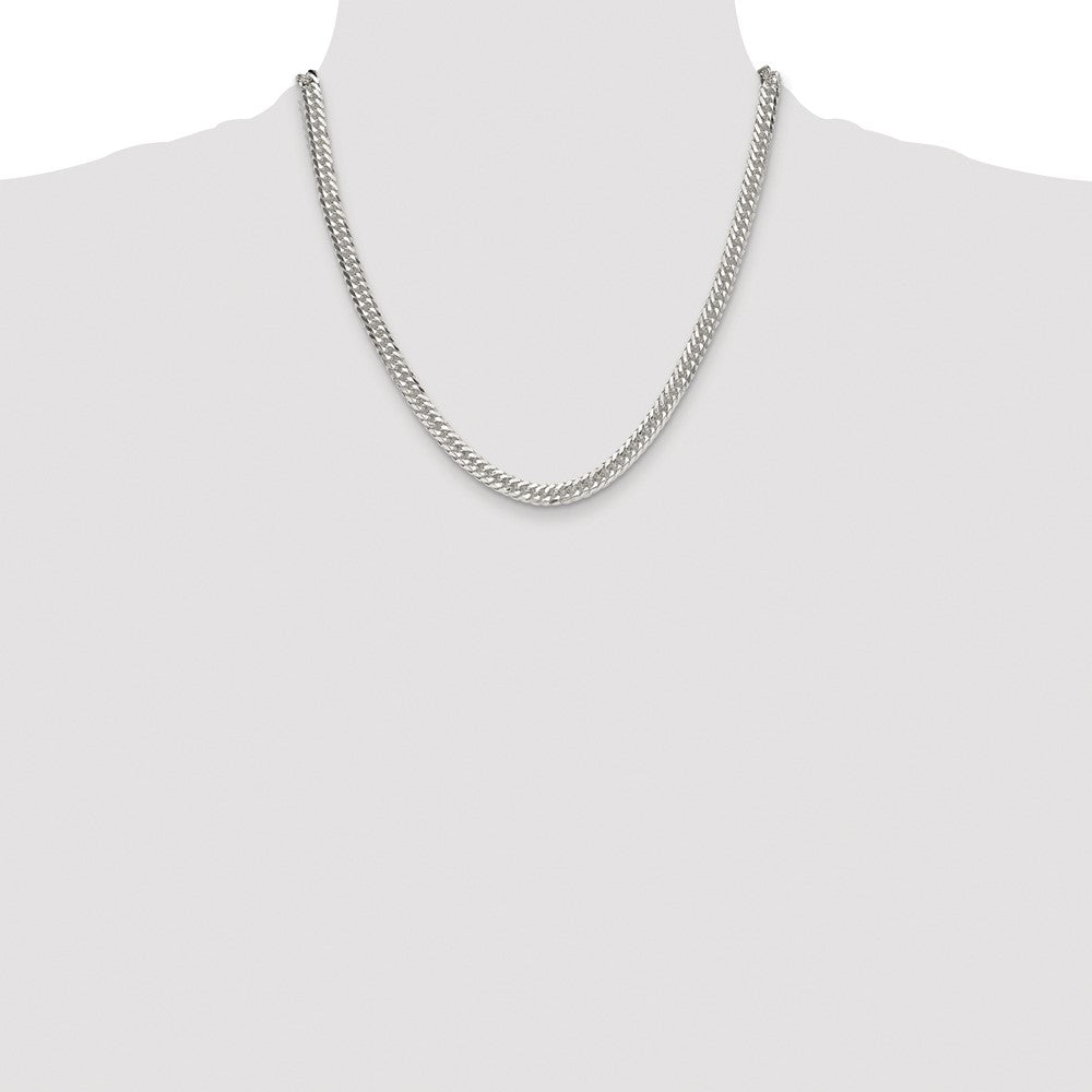 Specifications: Material: Primary - Purity:925|Finish:Polished|Length of Item:20 in|Plating:Rhodium|Chain Length:20 in|Chain Type:Curb|Chain Width:5.7 mm|Clasp /Connector:Lobster|Clasp Thickness (Female end):3.2 mm|Clasp Thickness (Male end):2.8 mm|Clasp Width (Female end):5.6 mm|Clasp Width (Male end):6.3 mm|Material: Primary:Sterling Silver|Width of Item:5.7 mm|Product Type:Jewelry|Jewelry Type:Necklaces|Sold By Unit:Each|Necklace Type:Chain Styles|Gender:Unisex|Texture:Diamond-cut|Profile Type:Flat|Material: Primary - Color:White|Plating Color:Silver Tone