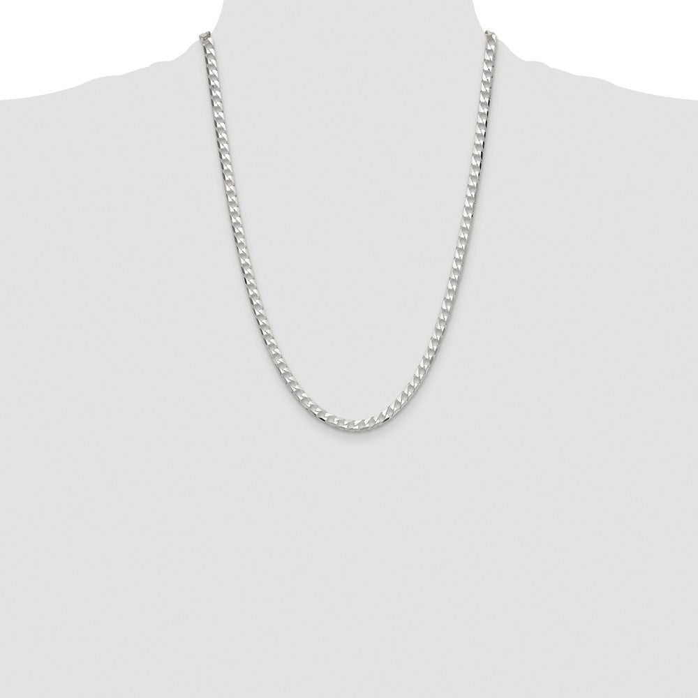 Specifications: Material: Primary - Purity:925|Finish:Polished|Length of Item:24 in|Plating:Rhodium|Chain Length:24 in|Chain Type:Curb|Chain Width:5 mm|Clasp /Connector:Lobster|Clasp Thickness (Female end):2.9 mm|Clasp Thickness (Male end):2.6 mm|Clasp Width (Female end):4.8 mm|Clasp Width (Male end):5.4 mm|Material: Primary:Sterling Silver|Width of Item:5 mm|Product Type:Jewelry|Jewelry Type:Necklaces|Sold By Unit:Each|Necklace Type:Chain Styles|Gender:Unisex|Texture:Diamond-cut|Profile Type:Flat|Material: Primary - Color:White|Plating Color:Silver Tone