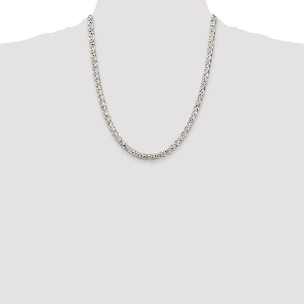 Specifications: Material: Primary - Purity:925|Finish:Polished|Length of Item:22 in|Plating:Rhodium|Chain Length:22 in|Chain Type:Spiga (Wheat)|Chain Width:5 mm|Clasp /Connector:Lobster|Material: Primary:Sterling Silver|Width of Item:5 mm|Product Type:Jewelry|Jewelry Type:Necklaces|Sold By Unit:Each|Necklace Type:Chain Styles|Gender:Unisex|Profile Type:Round|Material: Primary - Color:White|Plating Color:Silver Tone