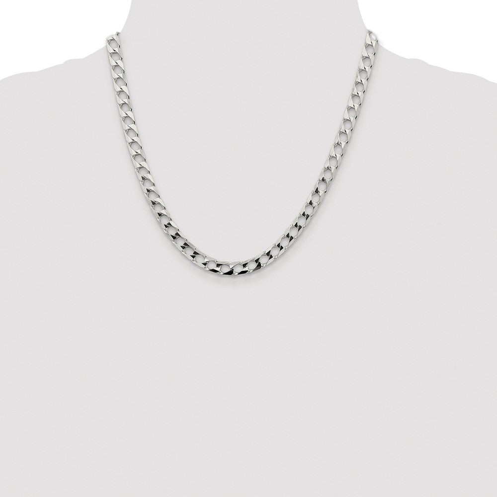 Specifications: Material: Primary - Purity:925|Finish:Polished|Length of Item:20 in|Plating:Rhodium|Chain Length:20 in|Chain Thickness:2.4 mm|Chain Type:Curb|Chain Width:6.25 mm|Clasp /Connector:Lobster|Clasp Thickness (Female end):3.3 mm|Clasp Thickness (Male end):2.7 mm|Clasp Width (Female end):6.3 mm|Clasp Width (Male end):5.3 mm|Material: Primary:Sterling Silver|Width of Item:6.25 mm|Product Type:Jewelry|Jewelry Type:Necklaces|Sold By Unit:Each|Necklace Type:Chain Styles|Gender:Unisex|Texture:Diamond-cut|Profile Type:Flat|Material: Primary - Color:White|Plating Color:Silver Tone