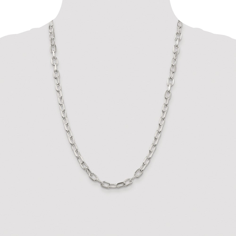 Sterling Silver Rhodium-plated 6.65mm Diamond-cut Long Link Cable Chain