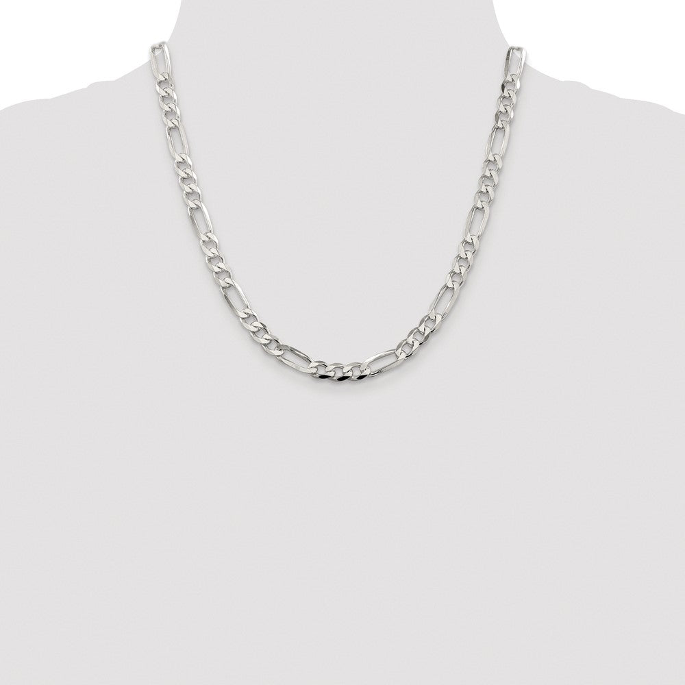 Specifications: Material: Primary - Purity:925|Finish:Polished|Length of Item:20 in|Plating:Rhodium|Chain Length:20 in|Chain Type:Figaro|Chain Width:7 mm|Clasp /Connector:Lobster|Material: Primary:Sterling Silver|Width of Item:7 mm|Product Type:Jewelry|Jewelry Type:Chains|Sold By Unit:Each|Necklace Type:Chain Styles|Gender:Unisex|Texture:Pave|Profile Type:Flat|Material: Primary - Color:White|Plating Color:Silver Tone
