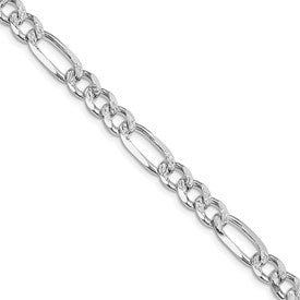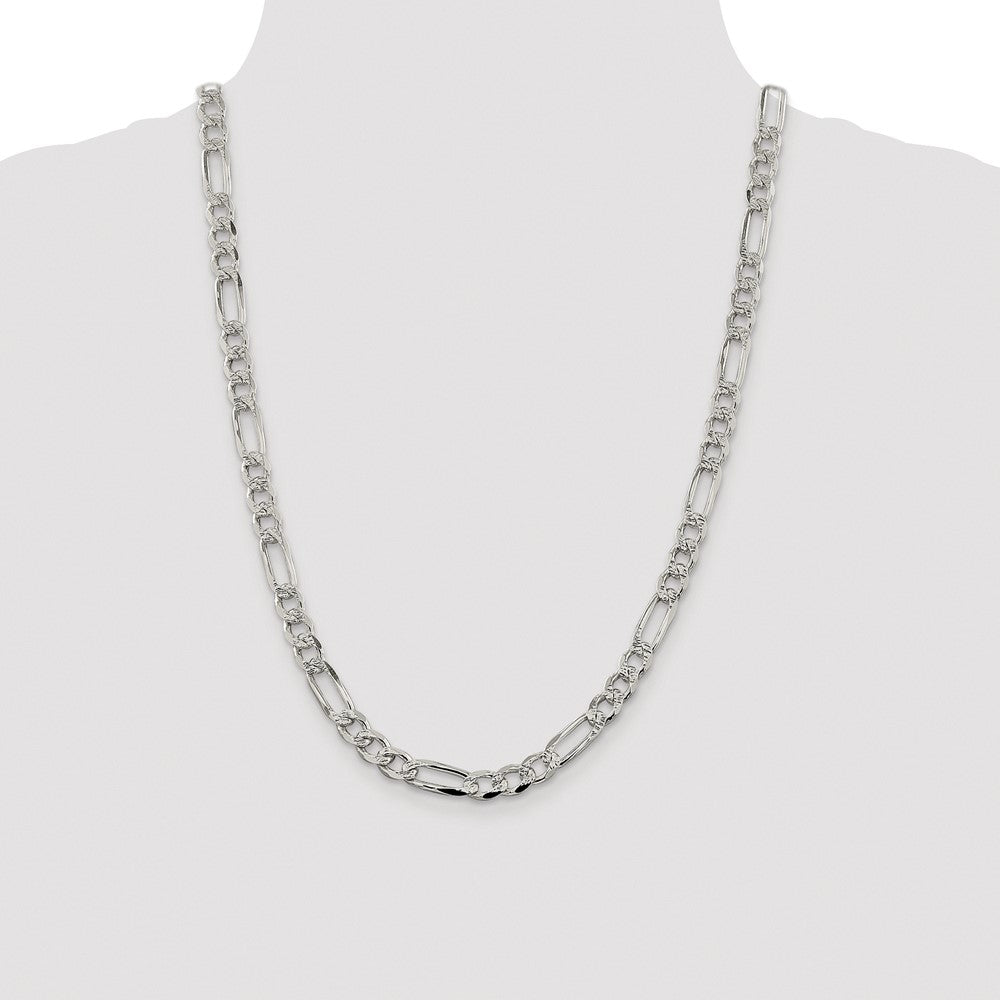 Specifications: Material: Primary - Purity:925|Finish:Polished|Length of Item:24 in|Plating:Rhodium|Chain Length:24 in|Chain Type:Figaro|Chain Width:7.25 mm|Clasp /Connector:Lobster|Material: Primary:Sterling Silver|Width of Item:7.25 mm|Product Type:Jewelry|Jewelry Type:Chains|Sold By Unit:Each|Necklace Type:Chain Styles|Gender:Unisex|Texture:Pave|Profile Type:Flat|Material: Primary - Color:White|Plating Color:Silver Tone