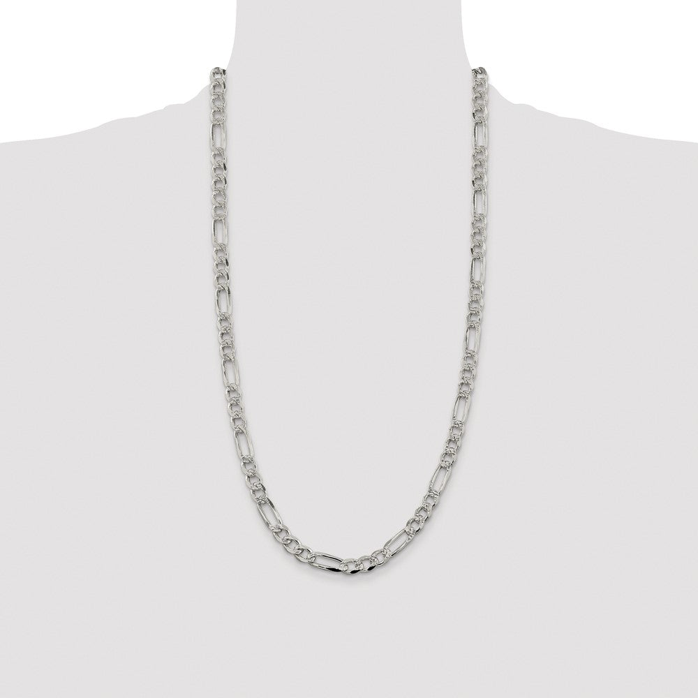 Specifications: Material: Primary - Purity:925|Finish:Polished|Length of Item:28 in|Plating:Rhodium|Chain Length:28 in|Chain Type:Figaro|Chain Width:7.25 mm|Clasp /Connector:Lobster|Material: Primary:Sterling Silver|Width of Item:7.25 mm|Product Type:Jewelry|Jewelry Type:Chains|Sold By Unit:Each|Necklace Type:Chain Styles|Gender:Unisex|Texture:Pave|Profile Type:Flat|Material: Primary - Color:White|Plating Color:Silver Tone
