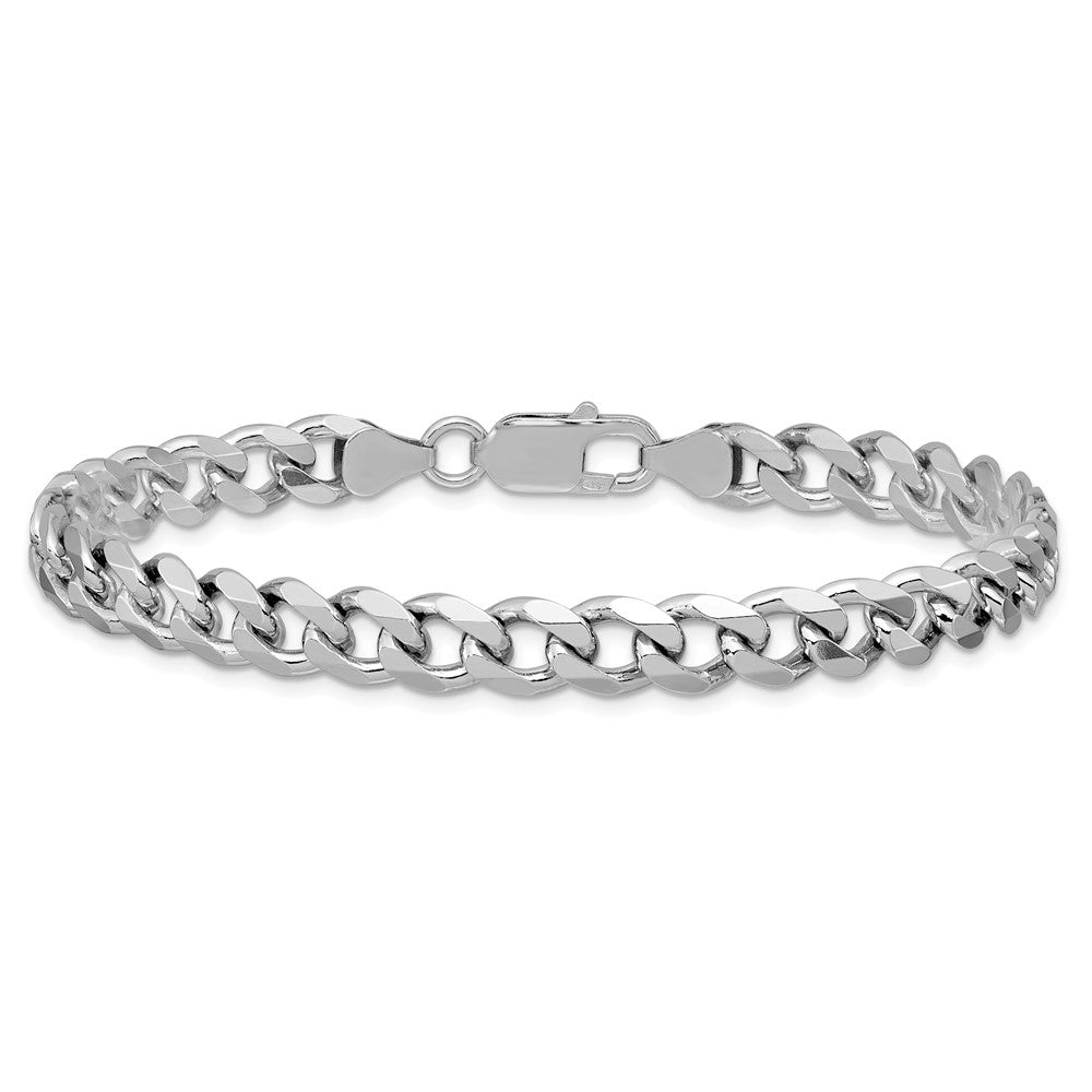 Specifications: Material: Primary - Purity:925|Finish:Polished|Length of Item:9 in|Plating:Rhodium|Chain Length:9 in|Chain Type:Curb|Chain Width:7.5 mm|Clasp /Connector:Lobster|Clasp Thickness (Female end):3.2 mm|Clasp Thickness (Male end):3.5 mm|Clasp Width (Female end):6.4 mm|Clasp Width (Male end):6.3 mm|Feature:Solid|Manufacturing Process:Machine Made|Material: Primary:Sterling Silver|Width of Item:7.5 mm|Product Type:Jewelry|Jewelry Type:Bracelets|Sold By Unit:Each|Bracelet Type:Chain Styles|Gender:Unisex|Material: Primary - Color:White|Plating Color:Silver Tone