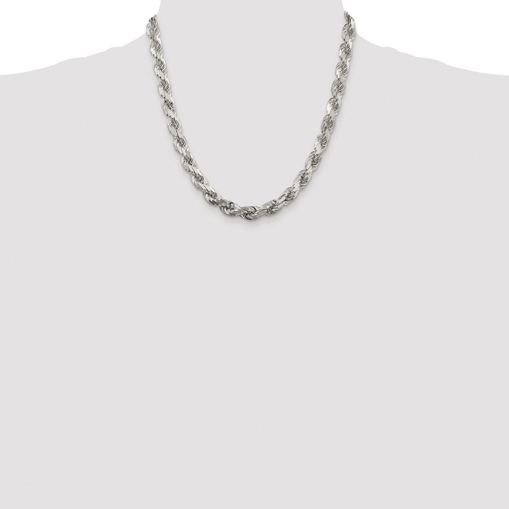 Specifications: Material: Primary - Purity:925|Finish:Polished|Length of Item:20 in|Plating:Rhodium|Chain Length:20 in|Chain Type:Rope|Chain Width:7.8 mm|Clasp /Connector:Lobster|Material: Primary:Sterling Silver|Width of Item:7.8 mm|Product Type:Jewelry|Jewelry Type:Necklaces|Sold By Unit:Each|Necklace Type:Chain Styles|Gender:Unisex|Texture:Diamond-cut|Material: Primary - Color:White|Plating Color:Silver Tone