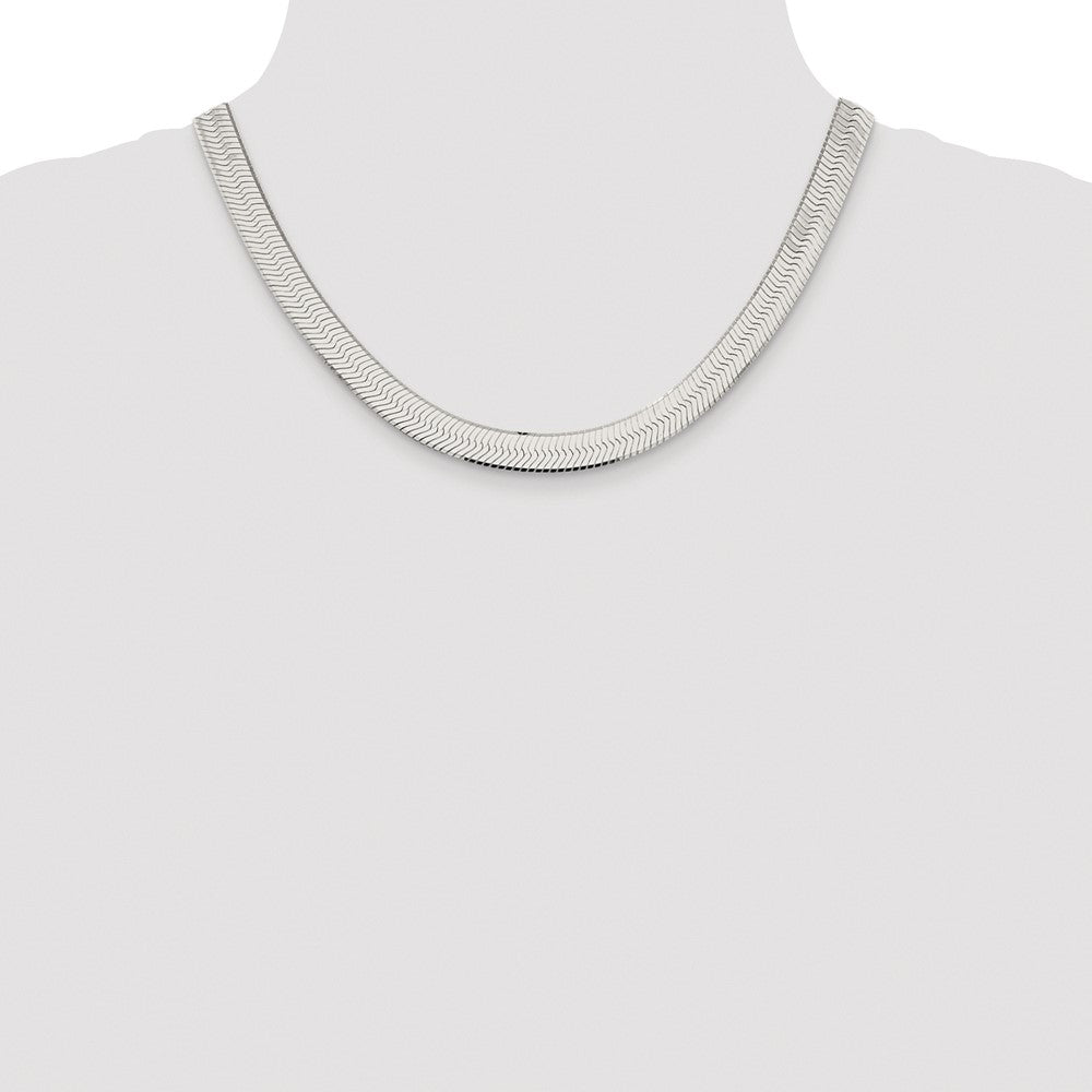 Specifications: Material: Primary - Purity:925|Finish:Polished|Length of Item:18 in|Plating:Rhodium|Chain Length:18 in|Chain Type:Herringbone|Chain Width:8.75 mm|Clasp /Connector:Lobster|Feature:Solid|Material: Primary:Sterling Silver|Width of Item:8.75 mm|Product Type:Jewelry|Jewelry Type:Necklaces|Sold By Unit:Each|Necklace Type:Chain Styles|Gender:Unisex|Profile Type:Flat|Material: Primary - Color:White|Feature 2:Magic|Plating Color:Silver Tone