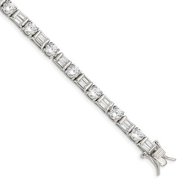 Sterling Silver Rhodium-plated Baguette and Round CZ Bracelet