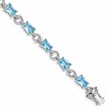 Specifications: Material: Primary - Purity:925|Finish:Polished|Stone Type_1:Cubic Zirconia (CZ)|Stone Type_2:Cubic Zirconia (CZ)|Stone Color_1:Blue|Stone Color_2:White|Stone Quantity_1:11|Length of Item:7.25 in|Plating:Rhodium|Chain Length:7.25 in|Chain Type:Fancy|Chain Width:6 mm|Clasp /Connector:Box Catch|Feature:Safety Bar|Material: Primary:Sterling Silver|Completeness:Complete (all stones included)|Stone Treatment_1:Synthetic|Stone Treatment_2:Synthetic|Product Type:Jewelry|Jewelry Type:Bracelets|Sold By Unit:Each|Bracelet Type:CZ Bracelets|Gender:Women's|Texture:Textured|Profile Type:Open Back|Material: Primary - Color:White|Stone Creation Method_1:Synthetic|Stone Creation Method_2:Synthetic